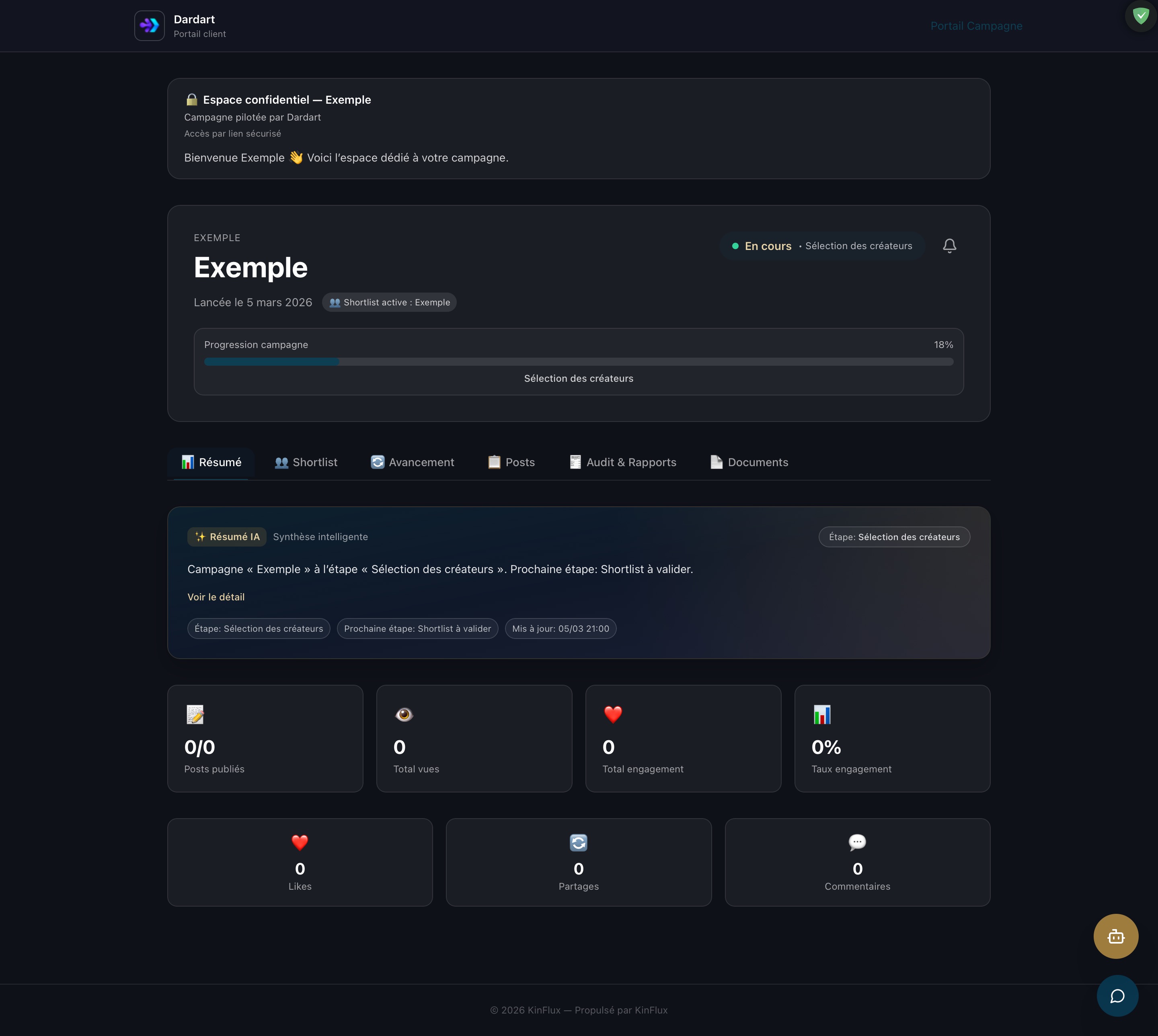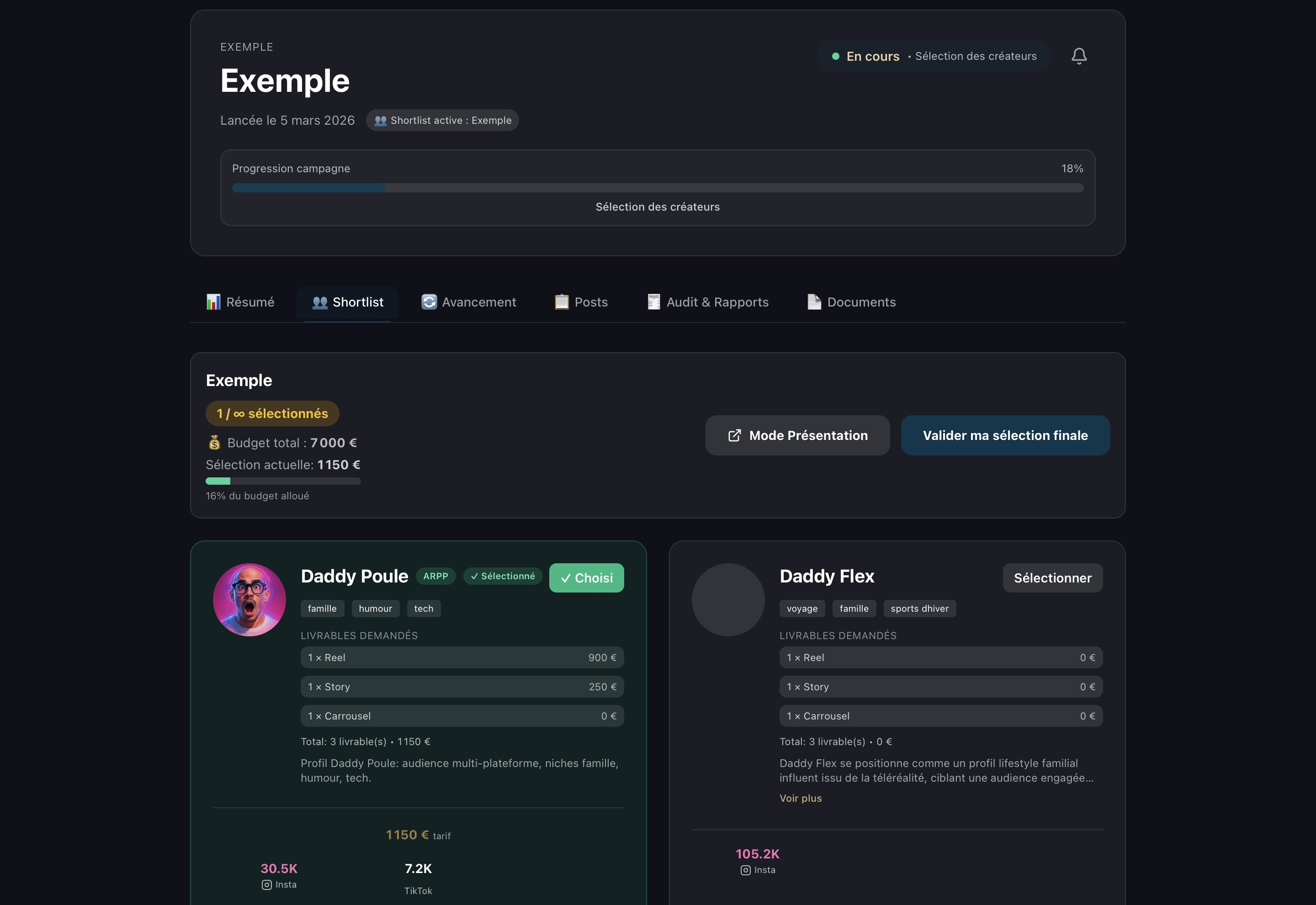 Nous préparons un portail influenceur pensé pour les agences d'influence: brief, contenu, statistiques et facture, campagne par campagne.